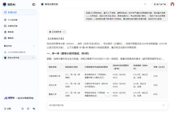 当贝AI高考意愿专家接入了全网头部AI模子DeepSeek-R1满血版(含0528版),包罗各高校积年的登科分数线、招生打算、专业就业前景等消息。